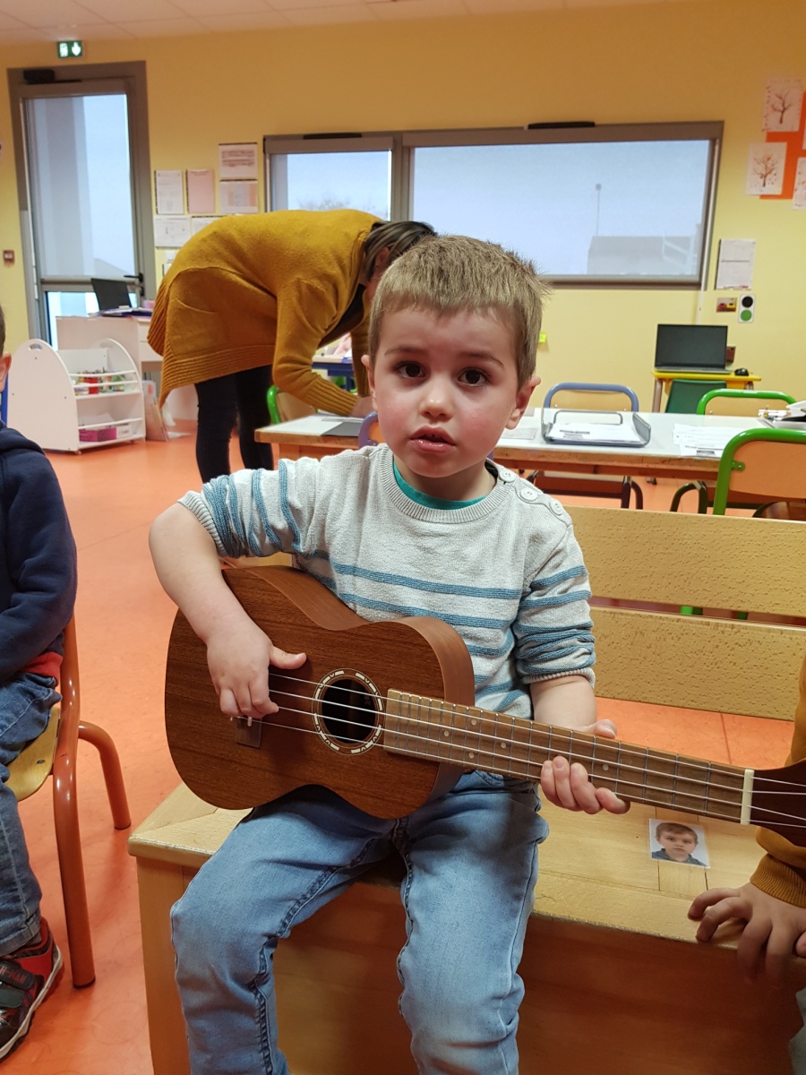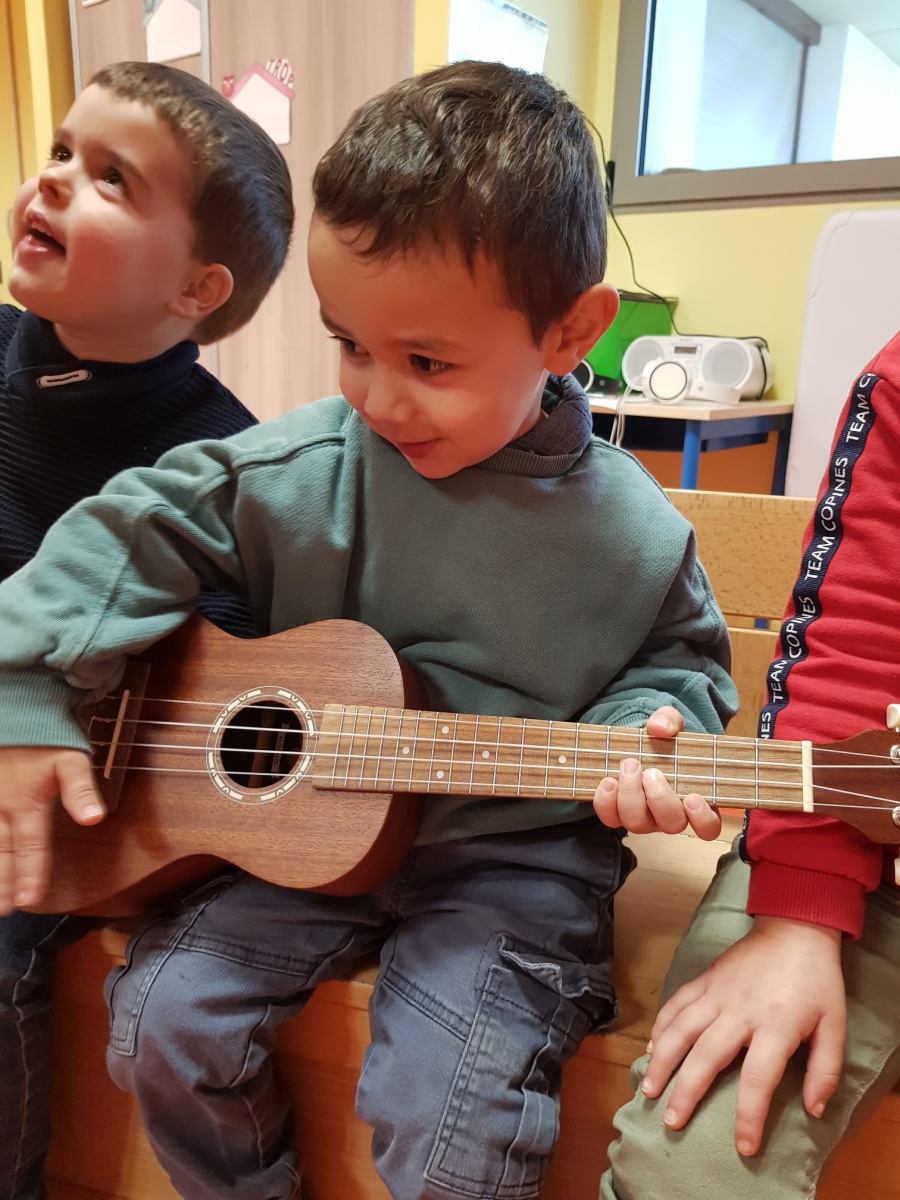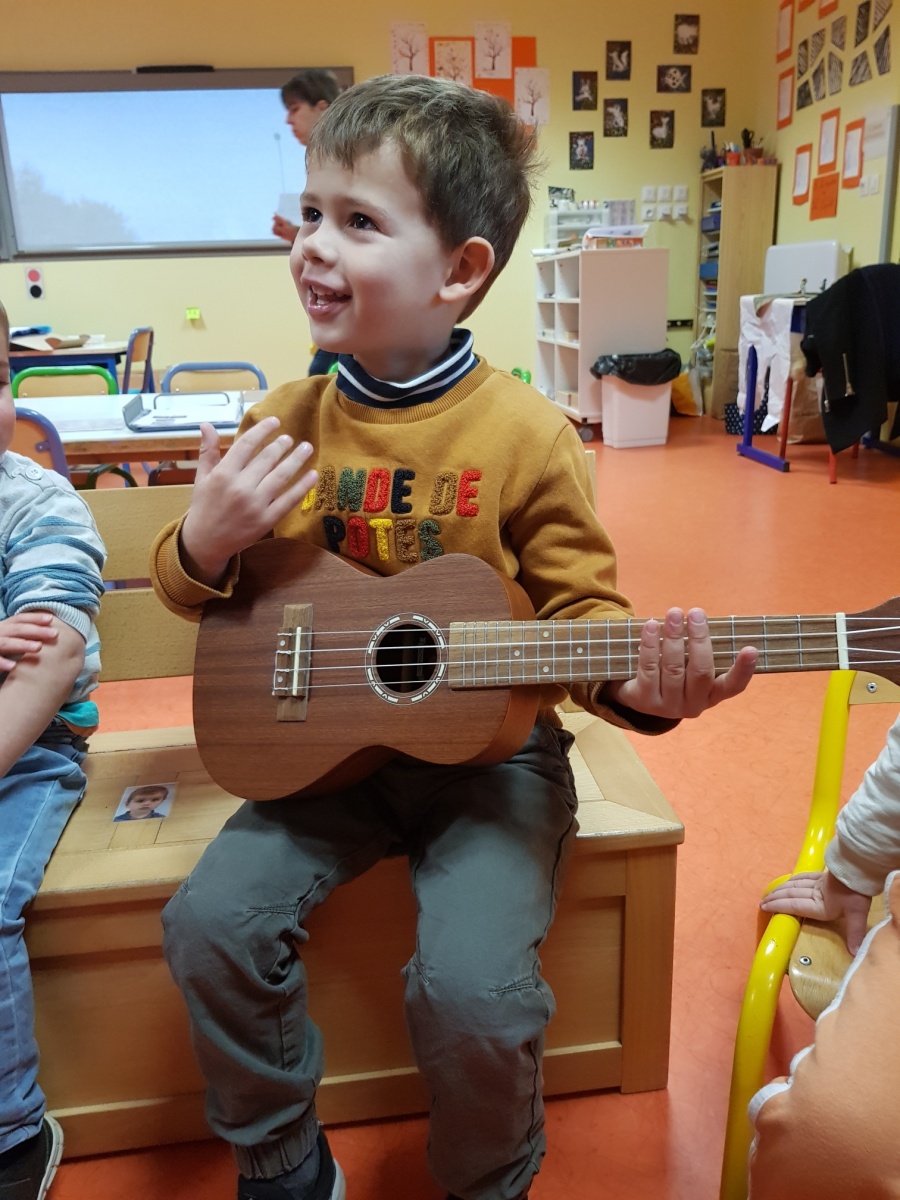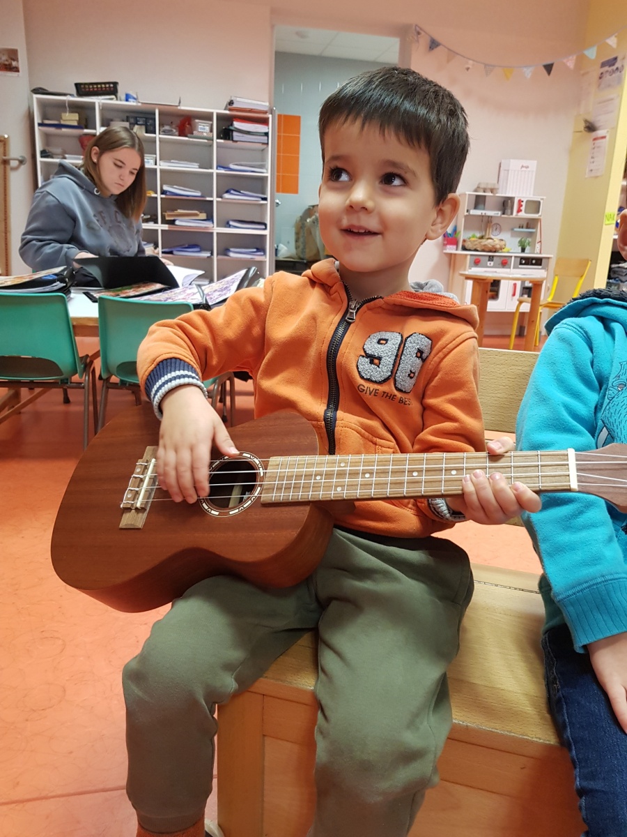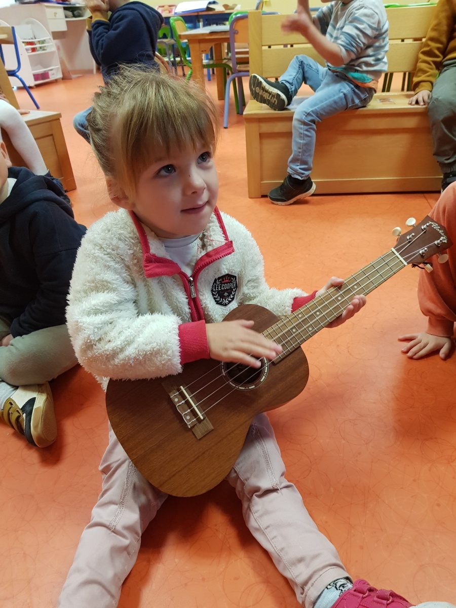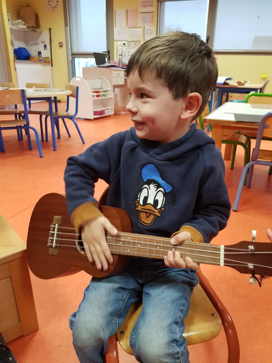 Cette semaine, les élèves de la classe de Julie ont gratté les cordes du “Ukulélé” de Camille.