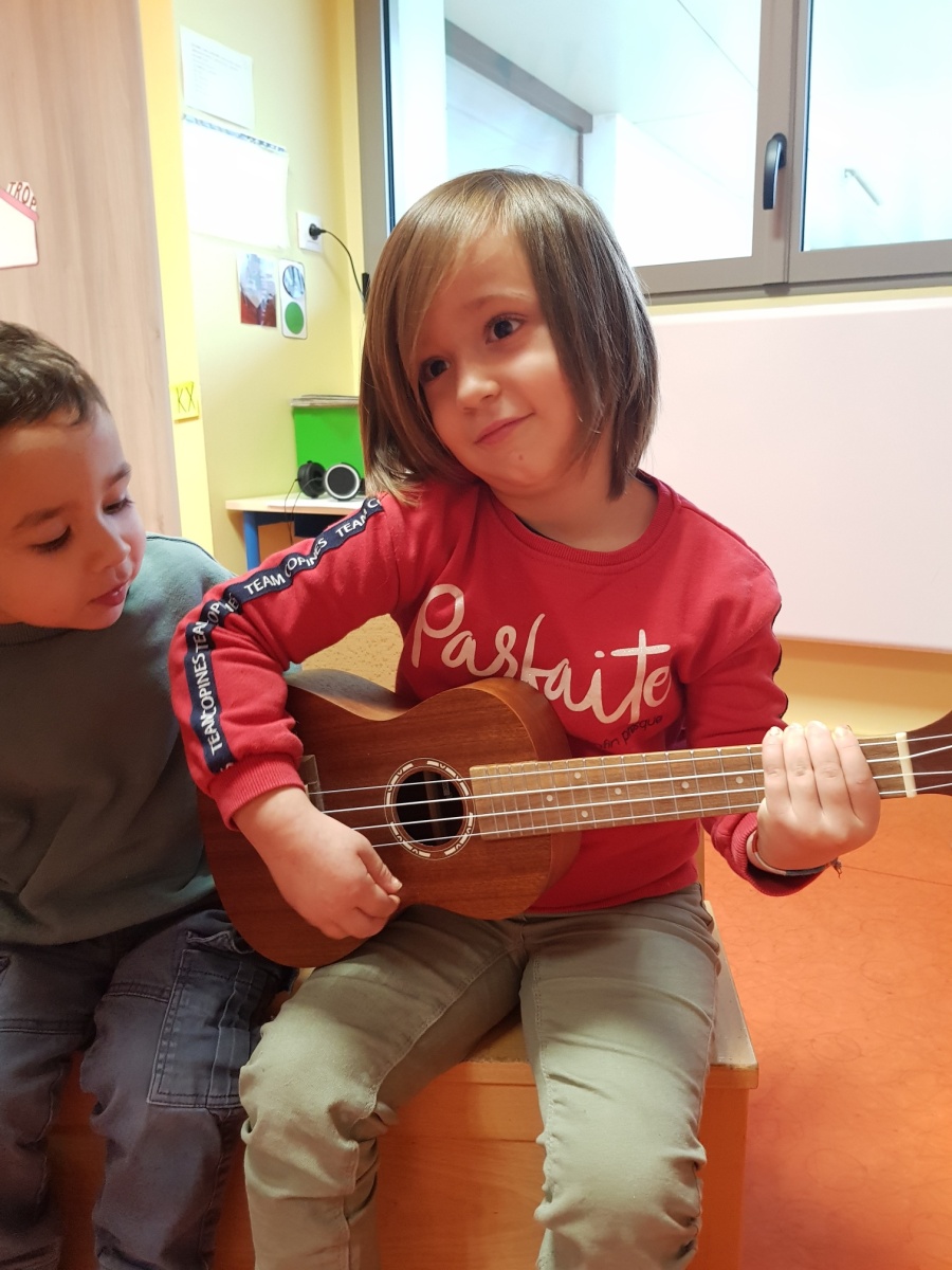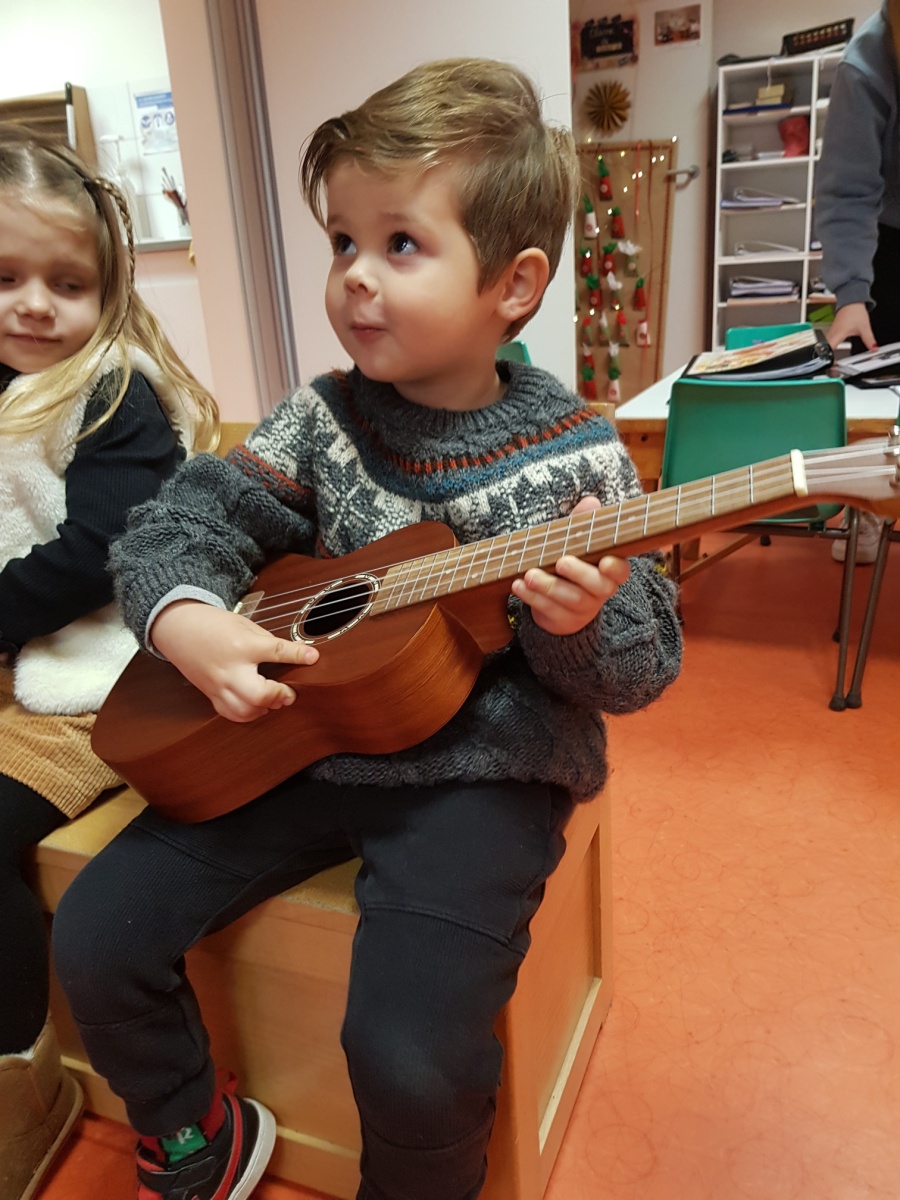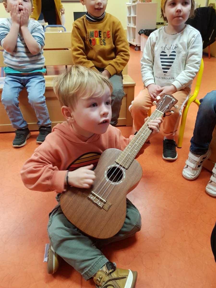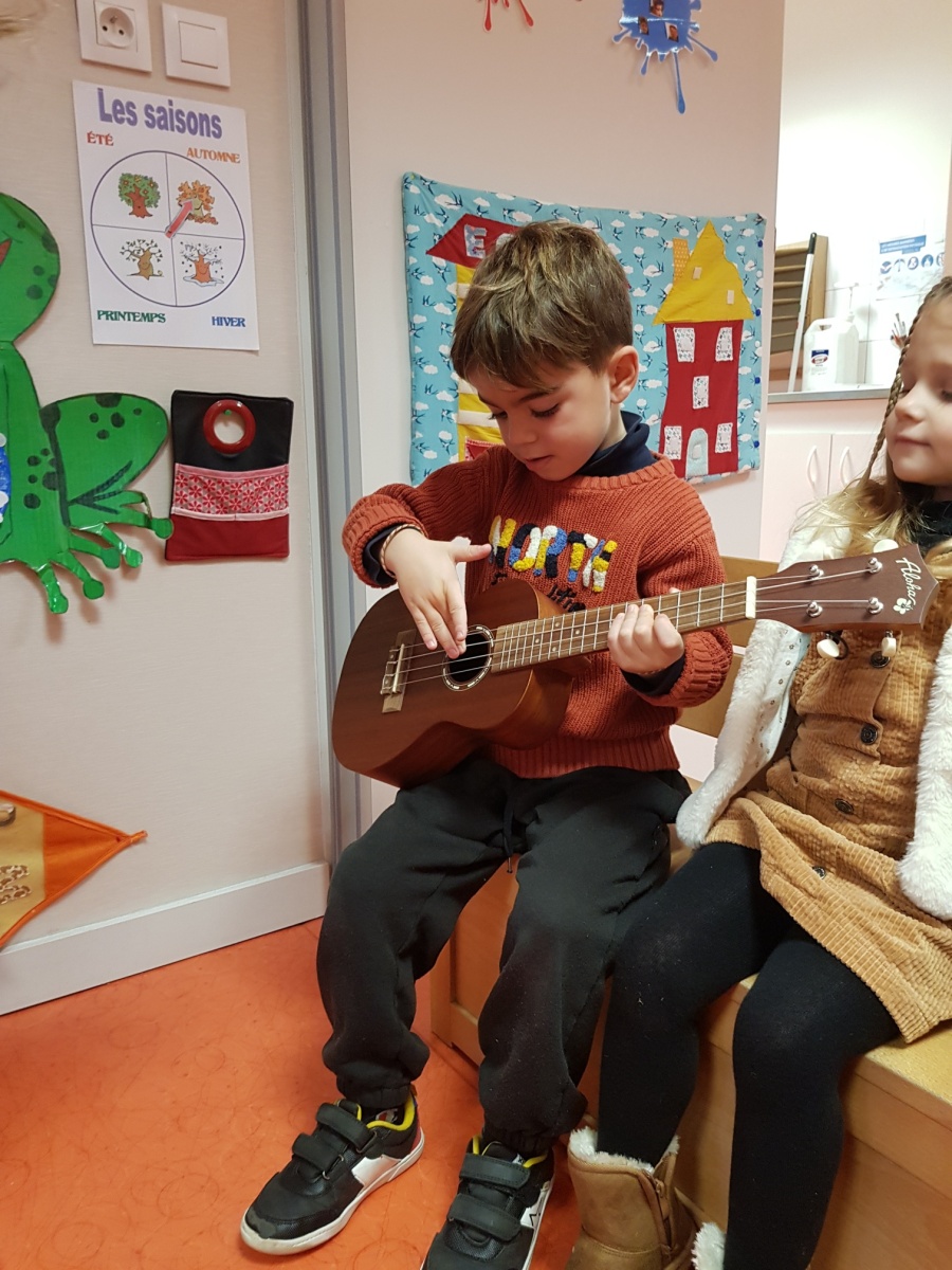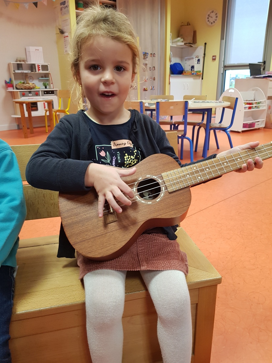 Cette semaine, les élèves de la classe de Julie ont gratté les cordes du “Ukulélé” de Camille.